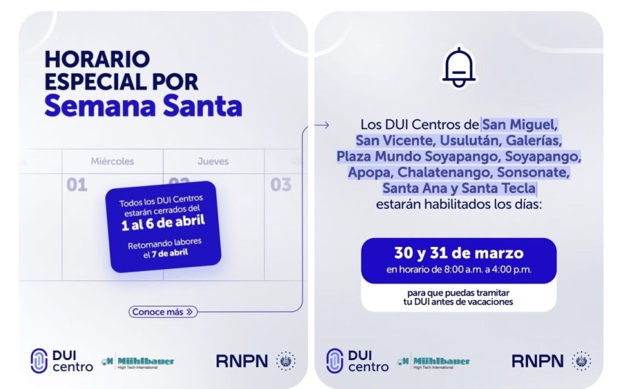 Politica Oficina central del RNPN estará cerrada en Semana Santa y los duicentros estarán cerrados del 1 al 6 de abril domingo 29, marzo 2026 - 4:32 a. m.